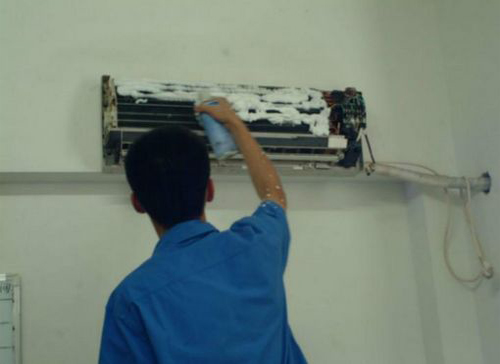 | 日土空调维修师傅给日土用户上门维修清洗空调。 |
